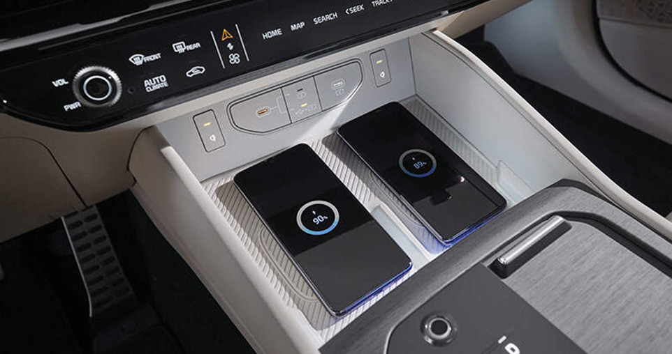 듀얼 스마트폰 무선 충전, C타입 USB 포트, 그리고 애플 카플레이 유선 연결도 지원됩니다.