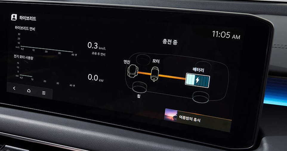 이전 2.4 하이브리드 대비 훨씬 부드럽고 매끄러운 주행 질감을 제공하며, EV 모드 상태에서도 시속 60~70km까지 주행 가능합니다.