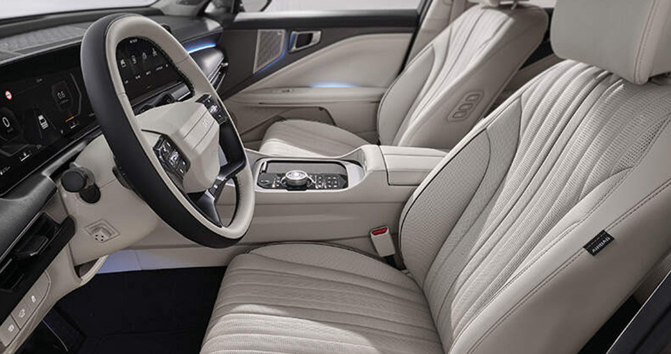 실내는 12.3인치 디지털 클러스터와 커브드 디스플레이로 구성되어 탑승자를 감싸는 고급스러운 분위기를 연출합니다.