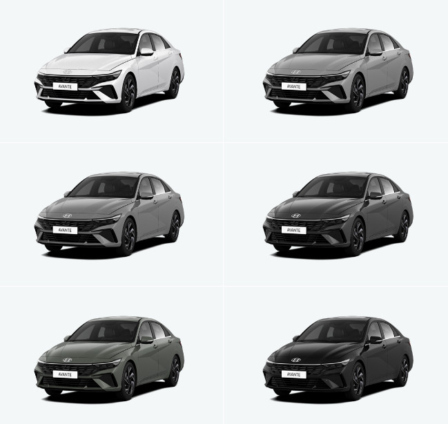 신형 아반떼 색상도 고급스럽고 채도 낮은 컬러 부터 쨍한 컬러풀한 색상까지 선택지가 다양합니다.