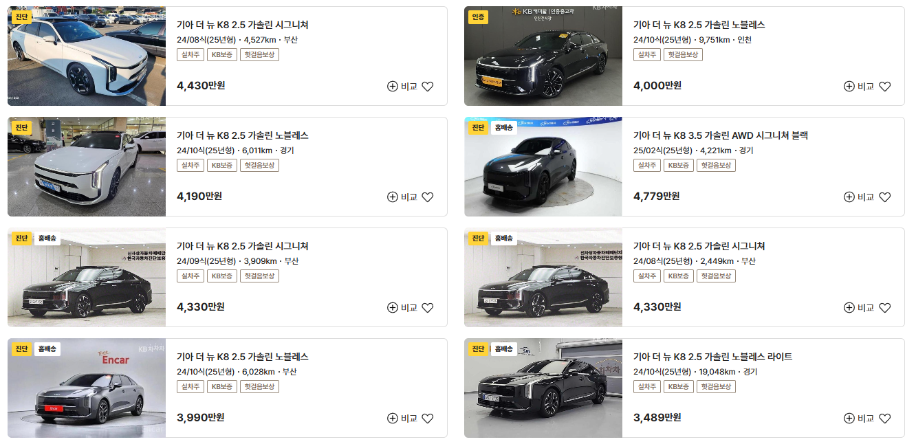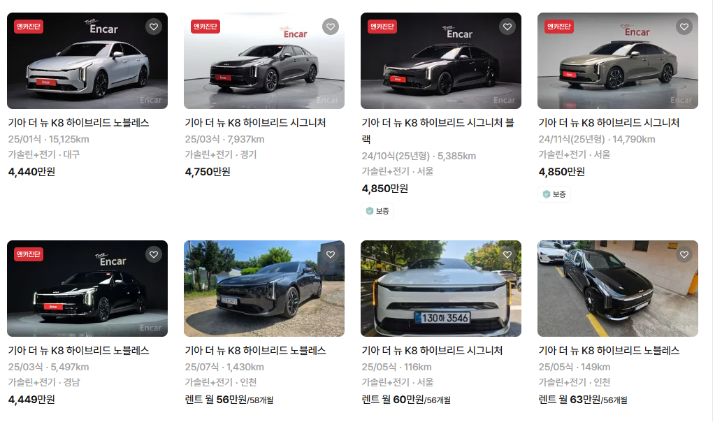 상대적으로 연식이 짧고, 매물도 풍부한 상황이기 때문에 지금이 K8 하이브리드를 중고로 구매하기에 좋은 시점일 수 있습니다.